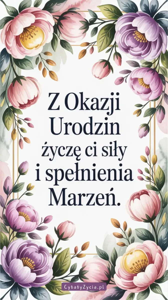 „Życzę Ci, aby Twoje marzenia rosły razem z Tobą, a uśmiech nigdy nie schodził z twarzy.”